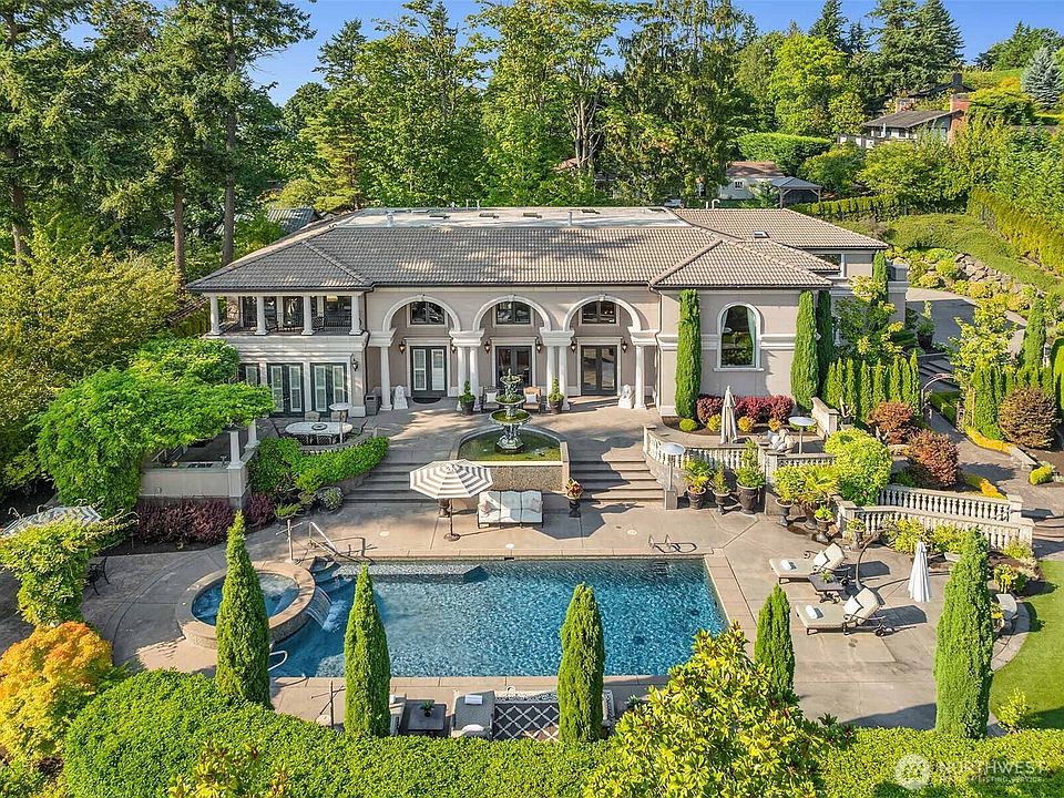 Drawing from timeless villas of Tuscany, architectural brilliance meets European elegance in Tuscan-Inspired Clyde Hill Estate. Over 7,000SF blends Pacific Northwest luxury on gated half-acre. Designed w/entertaining in mind, massive granite island anchors gourmet kitchen adorned w/rich custom cabinets, luxury-grade appliances that overlook a wall of French doors leading to deluxe outdoor kitchen & dining. 5 spacious bedrooms, each w/private en-suite. Primary suite is a private oasis featuring serene balcony overlooking pool, two-way gas fireplace, spa-inspired bath w/steam shower & custom designer closets. Formal dining, wine parlor, 2 offices, game room & gym. A Mediterranean retreat surrounds resort-style pool, spa, firepit & terraces.