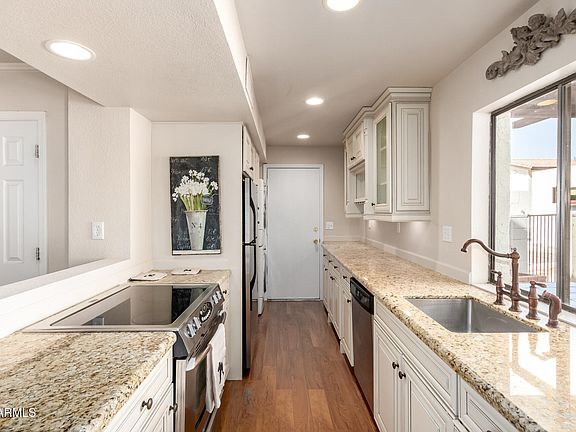This beautifully remodeled TH offers the perfect balance of comfort, convenience, and Arizona charm. Nestled in a lush community at the base of So Mtn and bordering the AZ Grand Golf Course, this home is surrounded by natural beauty and endless recreation. Inside, the redesigned kitchen features custom cabinetry, granite countertops, pantry storage + W/D. Both bathrooms have been stylishly updated, and recent upgrades include a new electrical panel and water softener. Step outside to your private landscaped yard w/covered veranda ideal for morning coffee, relaxing evenings, or entertaining. Across the street, South Mtn's 16,000 acres of hiking/biking trails await, offering breathtaking desert views and a front-row seat to the natural wildlife. Four pool/spas on site.. Perfectly situated, you'll enjoy easy access to shopping, dining, and major highways, with Sky Harbor, Downtown Phoenix, ASU, and more just minutes away.