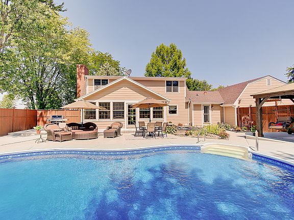 LISTED AND PENDED! A well-maintained, one-owner home featuring 3 beds 2.5 baths, and a finished basement, situated on a private 4-acre lot in Desirable Traders Pointe Area. This home offers an entertainer's dream of a backyard oasis equipped with an in-ground pool, koi pond, a well-built enclosure with a hot tub, an outdoor shower, and a fully fenced pool area. Beautiful all-seasons room filled with natural light overlooking the pool. Kitchen with loads of cabinets, eat-in island, newer stainless steel appliances with induction range/double-oven combo, open to the dining room making it excellent for entertaining. You'll love walking this beautiful serene property filled with lots of wildlife. Nice shed for extra storage.