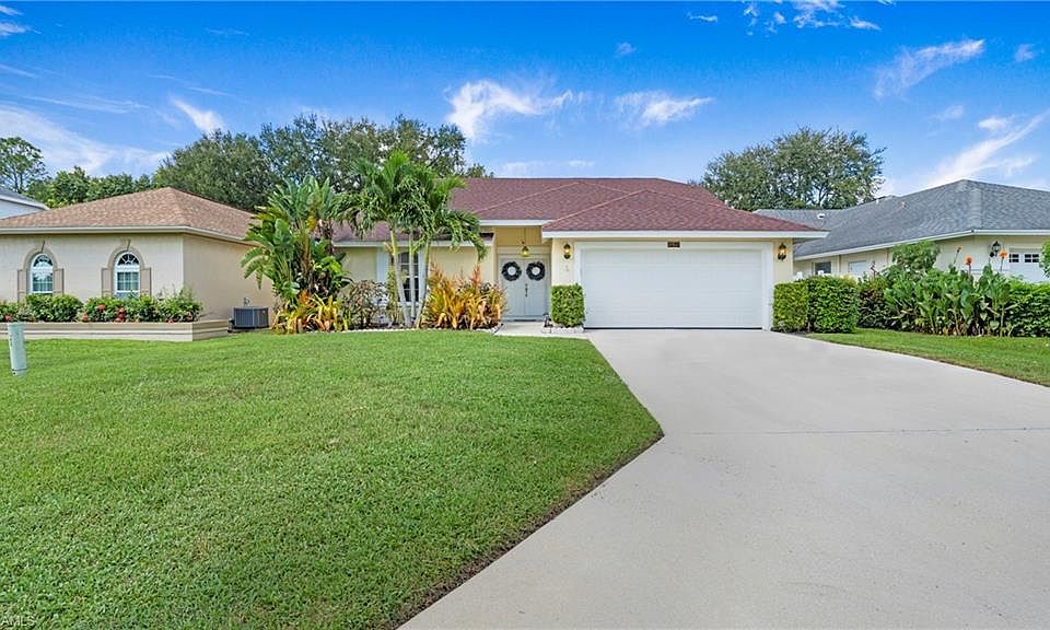 NO FLOODING IN HISTORY OF BERKSHIRE LAKES!!!!! Move-in ready and fully renovated, this 3 bedroom, 2 bathroom single-family home offers 1,587 sq ft of living space and modern upgrades throughout. Renovated in 2019 with stainless steel appliances, lighting, and cabinetry, plus granite countertops in the kitchen and bathrooms. Roof (2019), A/C (2021), LVP floors (2022). French doors lead to a screened lanai and open to a brand-new heated pool SALTWATER pool (2022) with a sunning shelf, creating a private backyard oasis. The fully fenced backyard is lushly landscaped for privacy and relaxation. Additional features include a 2-car garage, hurricane shutters and newly blown insulation for energy efficiency. Berkshire Lakes is a pet-friendly community with LOW HOA fees, tennis and pickleball courts, clubhouse, community pool, and walking trails. Conveniently located near Publix, Starbucks, dining, and only 15 minutes to Fifth Avenue South and Naples beaches.