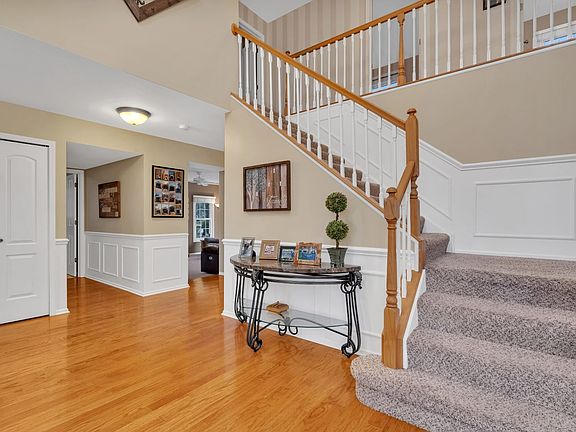 Welcome to this beautiful Wedgewood model in the sought-after subdivision Chestnut Corners. Great cul de sac location! This home offers 4 bedrooms, 2.5 bathrooms and a finished basement. The main level features a large foyer with hardwood flooring and open staircase with oak railings. Office with high ceiling, triple stack windows, French doors and plantation shutters. Spacious living and dining rooms. Large eat-in kitchen with island, granite countertops, double oven, recessed lighting, hardwood floors, desk area and staircase entry to upstairs. Granite breakfast bar overlooking cozy family room. Step down family room has gorgeous built-ins, stone fireplace and doors overlooking the backyard. Laundry room is located on the main level and has cabinets for storage and a laundry sink. The second level is open to below and includes all 4 bedrooms. Double doors lead to master bedroom with vaulted ceiling and large walk-in closet. Private master bathroom with heated tile flooring, whirlpool tub, vanity with dual sinks and granite countertops, and separate shower with rainfall shower head. The second full bathroom was updated and also has dual sinks with granite countertops. All rooms are generous in size. Finished basement with room for entertaining! Basement also has ample storage. Backyard has beautiful brick paver patio with fire pit. Chestnut Corners has a park and baseball fields! Awesome location! Minutes to fantastic shopping, restaurants, train, major access roads and more! Schedule your showing today!