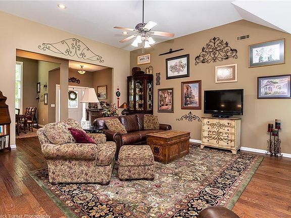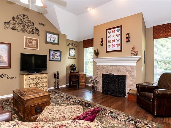 Just minutes from town in an established neighborhood this impeccable home with custom paint has been meticulously cared for! Formal dining, living room (with soaring ceilings) and kitchen are at the center of this fabulous split floor plan. Kitchen has all new stainless steel appliances (2015 & newer) and is the ideal central gathering place for family or entertaining! Beautiful wood floors throughout the home were installed in 2015. Prepare to relax in the gorgeous spa like master suite. Master shower has all been redone too. New granite in kitchen and bathrooms were installed in 2015. All new windows and blinds in 2015. Fireplace was redone in 2015. Custom cubbies built in laundry room. Spectacular large back yard is great for families and pets to run, play and entertain. Lots of privacy as this home adjoins green space owned by POA and has wooded lot behind that will not be built on. Beautifully landscaped with trees. Refrigerator, washer & dryer convey. Make an appointment today!