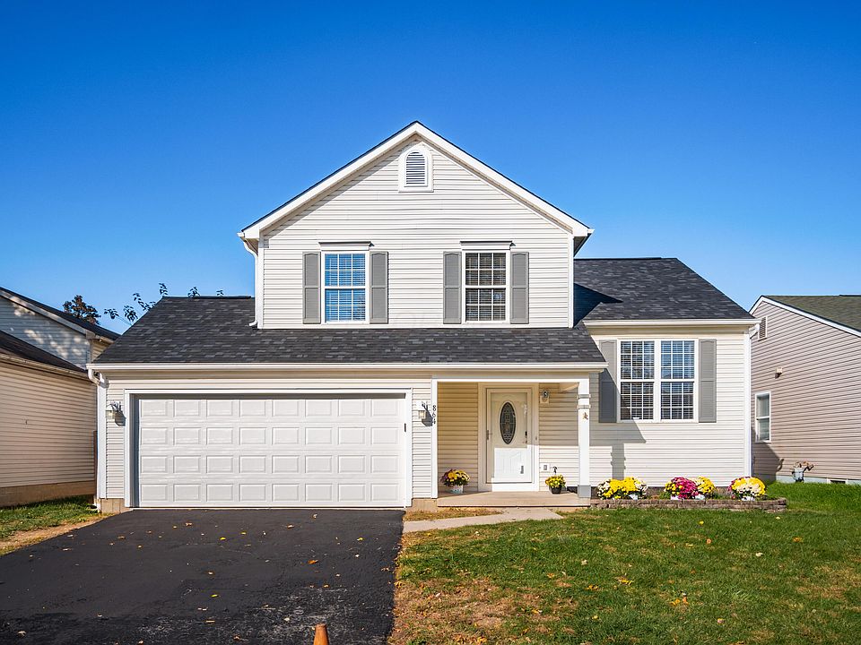 The inviting living room centers around a cozy fireplace, creating a warm and welcoming space for family or guests. Upstairs, the spacious primary suite includes a private full bath, while two additional bedrooms and a second-floor laundry option add both comfort and convenience.