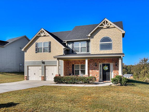 This stunning 5-bedroom, 3-bath, two-story home boasts a brand-new architectural roof and freshly painted exterior. Step into the open floor plan featuring hardwood floors and a dramatic two-story foyer. The elegant dining room showcases coffered ceilings and picture frame molding, which continues into the breakfast area. Arched entryways add a touch of sophistication, while the spacious great room is anchored by a stone fireplace. Open to the great room the kitchen is a chef's dream with granite countertops, a built-in oven, smooth top cooktop, breakfast bar, and a breakfast area overlooking the expansive backyard making this the perfect home for entertaining. A guest bedroom and full bath are located on the main level, along with a convenient downstairs laundry room. Upstairs, the primary suite offers a vaulted ceiling, a private sitting area, and an en-suite bathroom with a garden tub and separate vanities. The other 3 additional upstairs bedrooms feature vaulted ceilings and one of the bedrooms has been transformed into a custom closet, offering a luxurious touch. The large backyard features a covered patio, ideal for entertaining, get-togethers, and backyard BBQs.