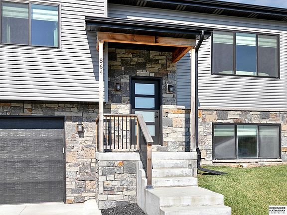 Not your typical split entry! This spacious open-concept home offers soaring ceilings, abundant natural light, and a modern color palette. The kitchen boasts upgraded appliances, quartz island, and dining area that opens to a large covered deck. The primary suite includes a private ensuite bathroom with walk-in closet, while two additional bedrooms and a full bath complete the main level. The finished lower level features a family room, 4th bedroom, full bath, and laundry. Three of the four bedrooms include walk-in closets. The oversized 2-car garage offers extra storage. Step outside to a huge backyard with patio, underground sprinklers, and peaceful tree views. Conveniently located—you can even walk to the new Ashland Brewing Co! Move-in ready and waiting for you.