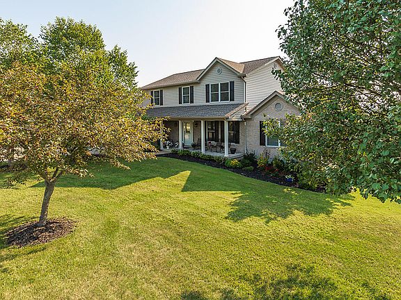 Discover unparalleled comfort and luxury in this custom-built home in the coveted Shaw Hill Subdivision. Perfectly designed for multi-generational living, the home features two Master Suites—one conveniently located on the main floor and another on the upper level. This true 5 bedroom home is nestled on a small cul-de-sac street on sprawling 1.6-acre lot, this residence offers the ideal blend of seclusion and convenience. The main level exudes elegance with its beautiful hardwood floors and an updated kitchen that boasts granite countertops, stainless steel appliances, and a seamless flow into the breakfast room and family room, complete with a cozy wood-burning fireplace. NO STEP living is possible on main level. The versatile formal living room can easily transform into a dining area or a home office. Enjoy breathtaking countryside views from the deck, where a power awning provides shade for your outdoor relaxation. Perfect home for entertaining! The expansive lower level is designed for both leisure and functionality, featuring a generous rec room with a gas fireplace and walkout access. Meticulously maintained and too many upgrades to mention! This one is a must see!