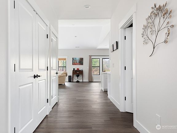 Still in new condition, tucked away on a quiet street between Hamilton & Birdsview. Single level living w/no detail overlooked in this NW Contemporary gem. Entire house w/LVP makes this a great option for anyone w/allergies and/or mobility issues. Open-concept great room allows for cooking while entertaining. Abundance of quartz countertop space w/room for dining. Just off kitchen find huge walk-in pantry. Vaulted ceilings & bright color palette make the room bright even on a gloomy day. Propane fireplace insert placed within shiplap surround creates a beautiful focal point. Private primary suite complete w/5 pc ensuite & walk-in closet. Landscape is cleared & ready for your personal touches. Mountain views & Elk visitors are a bonus.