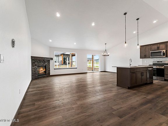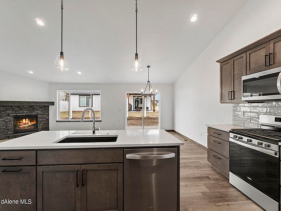 Charming single-level home that has been tastefully designed and features all the modern comforts you could need. Featuring 1520 sqft of living space, this three-bedroom home feels spacious, stylish and comfortable. There is an open-plan living space that includes the kitchen, living and dining room. A gorgeous gas fireplace with a stone façade can be found on one side of the living room and in the kitchen you'll find all you need to prepare delicious meals including quality appliances, sweeping quartz countertops and a pantry. There is a primary bedroom with a luxurious ensuite and walk-in closet, while bedrooms two and three each enjoy built-in closets. Extending the layout further is the main bathroom with quartz countertops, a well-equipped laundry, storage closets, a double garage and two patios, one at the read and one at the front of the home. Features include air-conditioning, a tankless water heater, a 95% gas furnace, a Nest thermostat, full sprinkler system/landscaping.