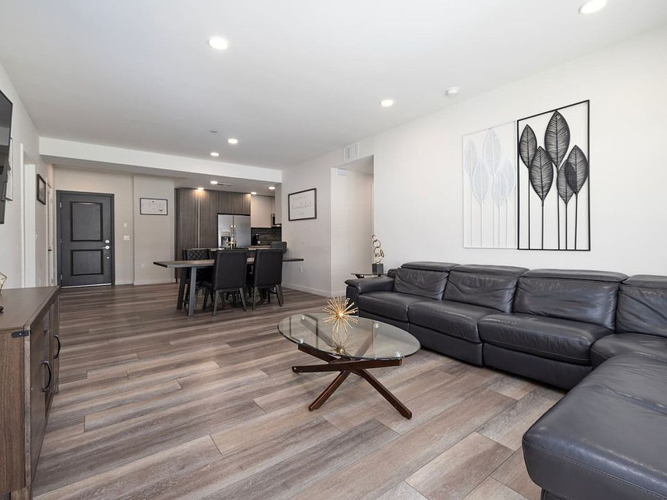 Welcome to this charming home in the heart of Los Angeles. This spacious and beautifully designed apartment features 3 bedrooms and 3 bathrooms, making it ideal for families or groups of friends looking for a comfortable stay. As you step inside, you'll find the first bedroom furnished with a plush queen-size bed, perfect for a restful night's sleep after a day of exploring the city. The second bedroom offers two queen beds, providing ample space for additional guests. The third bedroom also boasts two queen beds, ensuring everyone has a cozy place to unwind. One of the highlights of this apartment is the fully equipped kitchen, complete with top-notch amenities that will delight any culinary enthusiast. Whether you're preparing a quick breakfast or a gourmet dinner, you'll find everything you need right at your fingertips. After a day of sightseeing or business meetings, you can relax in the comfortable living area, equipped with high-speed internet for all your entertainment needs. Additionally, the property includes a washer and dryer, ensuring convenience during your stay. Parking is never a concern as this apartment offers free parking for guests. You can explore Los Angeles with peace of mind knowing your vehicle is safe and secure. Located in a safe and secure area, this apartment provides a tranquil retreat amidst the bustling city. Whether you're here for work or leisure, this home offers a perfect blend of comfort, convenience, and style for an unforgettable stay in Los Angeles. A security deposit is not required for this property.