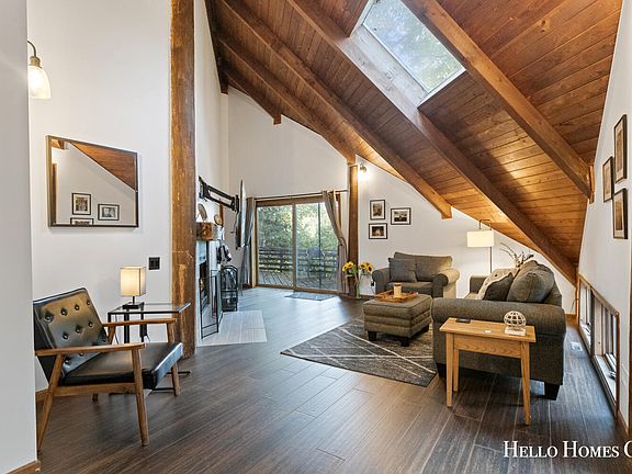 Say ''Hello!'' to this incredible one-of a kind contemporary home. Located in the sought after Forest Hills school district and perfectly positioned on almost 1.5 acres. Walking in you will notice the breathtaking 18ft. wood paneled ceilings with exposed beams. Not to mention tons of natural light in every direction you turn. The living room features a modern design with a wood burning fireplace and sliding glass doors that will lead to one of multiple decks. Moving through you will find the spacious kitchen that has been uniquely designed and features tons of counter space, matte black cabinets and a built-in coffee station. The private and comforting primary en-suite features a wood burning fireplace, an area for an office space or reading nook and access to your private deck. The attached bathroom has a double vanity, bath tub and a separate shower! There is also 2 more bedrooms and 1 full bathroom on the main floor. One special feature is the unfinished attic space offering a unique opportunity to finish a loft space! Moving down to the basement you find an amazing cinema room, all movie room furniture included in the sale. This space is ready for you to host the next movie night or big football game! Laundry and storage are located in the basement along with 2 stall garage access. This home is ready for its new owners. Schedule your showing today! Any and all offers due Tuesday, October 3 at noon.