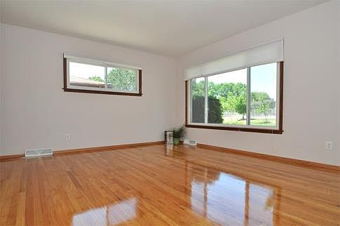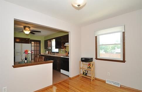 This clean and inviting ranch will have you at hello. Great floor plan flows well and features an updated full and half bath on main (split entry from half bath to master and to back hall). Gleaming hardwood floors in living room, dining room and all three bedrooms. Spacious eat-in kitchen with lots of cabinets and counter space. Appliances included too. Semi-finished basement has rec room, bonus room, laundry room AND workshop. Updates include six panel doors, newer entry doors, vinyl windows, new high efficiency Lenox furnace in 2010, new water heater in 2011 and new roof in 2014. Huge backyard, plus side drive to oversize two and a half car garage, with newer overhead door and electric door opener. HSA one year home warranty included also. A lot of home for less than most are paying in rent!
