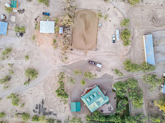 Prime NORTHEAST Tucson, by appointment only and PRIVATELY GATED. Large Metal Work Shop Building, Horse Barn with Tack Room, Mare Motel, Hay Barn, Arena PRIVATE WELL. Modern FARM HOUSE STYLE with wrap around DECK, Metal Roof, features 3 bedrooms plus loft, 2.5 bathrooms, Mesquite wood flooring, Granite Countertops, Fireplace in Large Living room, Formal dining and breakfast nook off Upgraded Kitchen. Lush backyard with paver patio, Hot Tub, Fire pit, grass yard