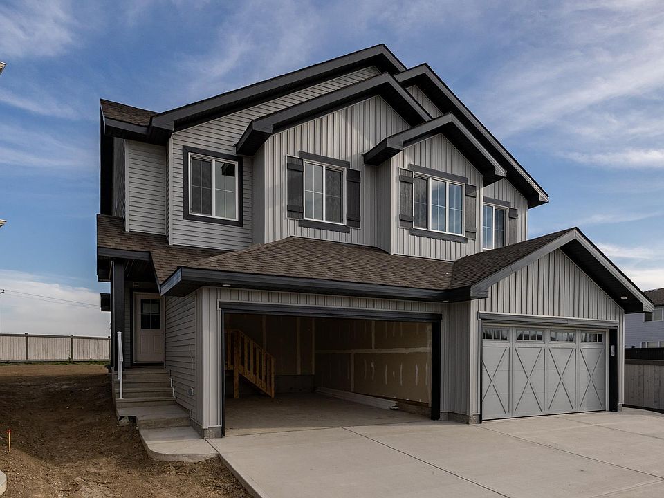 QUICK POSSESSION!! Juniper Heights is an expansive new community in Morinville. You'll enjoy a close proximity to schools, parks, pathways, new regional rec centre and more in this beautiful community! With over 1540 SQFT of open concept living space, the Soho-D from Akash Homes is built with your growing family in mind. This duplex home features 3 bedrooms, 2.5 bathrooms and chrome faucets throughout. Enjoy extra living space on the main floor with the laundry room and full sink on the second floor. The 9-foot ceilings on main floor and quartz countertops throughout blends style and functionality for your family to build endless memories. PLUS a SEPARATE ENTRANCE, $5000 BRICK APPLIANCE CREDIT TO THE BRICK, AND single oversized attached garage! PICTURES ARE OF SHOWHOME; ACTUAL HOME, PLANS, FIXTURES, AND FINISHES MAY VARY & SUBJECT TO AVAILABILITY/CHANGES!