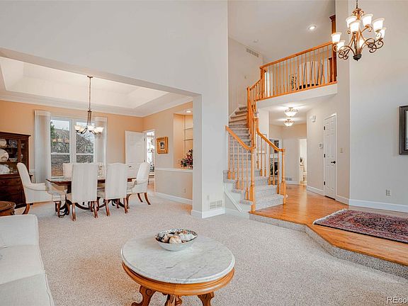 *DON'T MISS THE 3D TOUR* Masterfully updated seven-bed home in sought-after Highgate! This magnificent two-story features brand-new carpet, tastefully upgraded kitchen & bathrooms & an accommodating layout w/ effortless flow. Engulfed in natural light, the beautiful living room showcases a soaring vaulted ceiling & large clerestory windows. Entertain in style: the formal dining room flaunts a trey ceiling, chair rail moulding, backlit art niche & view of the vibrant backyard. The upscale kitchen boasts a new cooktop, refrigerator & freshly painted cabinetry. This space also presents stainless appliances including a double oven, granite counters, center-island w/ cooktop & an adjoining breakfast nook. Relax in the cozy family room, showcasing beautifully crafted built-ins, a brick-surround fireplace & gleaming hardwoods. The main level is complete w/ a versatile bedroom that can also be used as an executive office, a laundry room w/ ample cabinetry & a 3/4 bath w/ upgraded finishes. Upstairs, the incredible master suite includes a vast walk-in closet & luxurious, fully remodeled five-piece bath: enjoy all new modern fixtures, slab granite counter, bathtub, shower surround, upgraded tile & fresh paint. Two secondary beds are joined by an updated Jack-&-Jill bath. Plenty more room to spread out upstairs w/ a bonus loft & a guest suite w/ an attached 3/4 bath. In the expansive basement, find two conforming bedrooms, a full bath & a recreation room w/ a wet bar & beverage fridge. Rest easy w/ a radon mitigation system & newer energy efficient, Renewal by Anderson windows. Spend time in the professionally landscaped backyard offering a custom-designed paver patio, vibrant lawn, plentiful trees & shrubs & a privacy fence. Prime location near Cougar Run Park & Elementary School & a quick drive to C-470! Remarkable Highlands Ranch community provides miles of walking trails & four state-of-the-art rec centers w/ indoor & outdoor pools, weight rooms, sport courts & more.