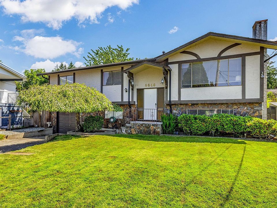 Investor alert! Solid 4 bedroom 2 bath family home in desirable Nordel location. Located on a quiet street on a nice lot with fruit trees including a mini orchard, irrigation system & storage shed. This home also offers great suite potential with a separate entrance & basement bathroom rough-in. 2 gas fireplaces, covered deck, high efficiency furnace, sub panel with 220 in the garage & EV ready! Perfect investment property at over 8000 sqft eastern exposed yard, covered deck, peek-a-boo view from main floor of the ocean & north shore ski mountains. Potential land assembly in the future or hold and build your new duplex or renovate current home and add suite & coach house. Close to great schools, shopping & Transit!