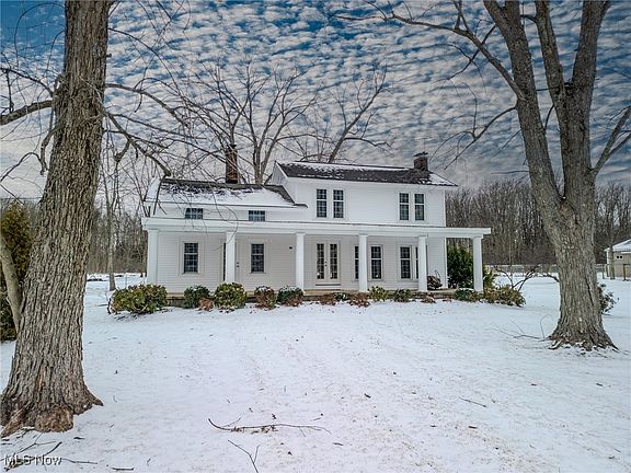 YOUR SEARCH IS OVER! Welcome to this charming historic home situated on 7.5 acres in beautiful Chardon Township, Ohio. You will immediately see the pride in ownership as you travel down the long driveway towards the home. You will be greeted by a beautiful large front porch which is a perfect place to relax over a cup of coffee in the morning to watch the sunrise while listening to the birds and appreciating your lovely surroundings. There is also a covered porch at the back of the house. The home is full of historic charm and has been meticulously maintained. The bedrooms, living room and dining room have original hardwood floors. The large living room has plenty of natural light and has a large, yet cozy woodburning fireplace. You will also appreciate the open wooden staircase and all the wooden trim throughout the home. The only thing needed is new buyers to add their personal touch and design in order to make this fabulous house their home. There have been many upgrades performed on the house including new vinyl siding, electric panel, sump pump, windows, exterior doors, some light fixtures, new walk-in shower and bathroom vanity. The owners recently dug a new well.