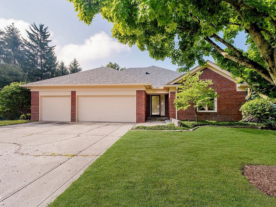 Gorgeous 4-BR/2.5-BA custom-built home in the coveted neighborhood of Cricket Tree, which is in the heart of Washington Township... and just a stone's throw away from W. 86th St. Tons of retail shopping & restaurants are within a very short walk. This all-brick 1 1/2 level home is a single family residence, but the HOA handles all lawncare & snow removal. Home has been meticulously maintained and updated by the current owners. Top features include: wide hallways & doorways throughout much of the home (handicap accessible); tons of living space (3,819 sq.ft, almost all of it on the main level); parkay hardwood flooring in several rooms; crown molding & recessed lighting throughout; a gorgeous wood-paneled office/den w/ fireplace; a large Primary BR (19'x13') w/ two walk-in closets & an en suite bathroom that has double vanites w/ quartz countertops, a tiled shower stall & a soaker tub; a 4-seasons Sunroom that overlooks a huge concrete patio; & a professionally-landscaped backyard that is fully-enclosed by a brick wall & metal fence. View the Zillow 3-D virtual walkthrough tour & be sure to check out the HomeTagz virtual tour for a complete list of features, updates, disclosures, receipts & much more.