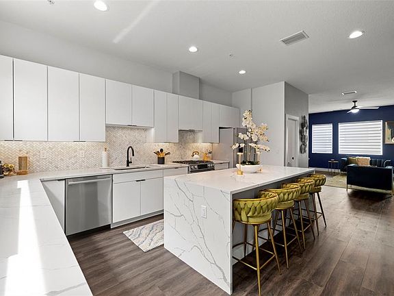 Live the vibrant urban lifestyle in this stylish and spacious 2-bedroom, 2.5-bathroom townhouse. Located in the heart of Downtown St. Petersburg, this residence offers the ultimate in convenience, comfort, and modern design. This ALL-BLOCK luxury-residence is situated in a NON-FLOOD, NON-EVAC ZONE, with Hurricane IMPACT windows for ultimate peace of mind. The lush landscaping is what you will see upon walking to the front entry way The first level features a versatile second bedroom with an en-suite bath with direct access to an oversized one-car-EV-ready garage complete with new epoxy flooring. The spacious chef’s kitchen boasts quartz countertops with an oversized island with a WATERFALL countertop, a breakfast bar for four, and sleek, flat surface, European, soft close cabinetry with a striking marble herringbone tile backsplash. The appliances are ALL brand-new Bosch appliances, including a FIVE burned GAS oven, convection microwave, dishwasher, refrigerator AND wine refrigerator will complete this stylish and functioning space that is perfect for entertaining. The living space shares the floor with the gourmet kitchen and is large, comfortable with lots of natural light. Retreat to the primary suite upstairs for ultimate relaxation where you'll find a brand-new, custom, walk-in closet with built-ins and stylish décor. A beautifully tiled ensuite bath with double sinks, custom LED mirrors, wood shelving and an extra-large walk-in shower. The washer and dryer room is conveniently located near the master bedroom. Also on the floor is a versatile loft space—perfect for a home office, creative studio, or workout zone. The entire townhome has custom roller-shade blinds that allow privacy and natural light. The crown jewel of this residence is the private rooftop terrace. Imagine unwinding under the new sunshade, grilling with friends on the brand new, built-in 36-inch gas grill with stone countertops. Imagine mixing cocktails in the rooftop wet bar, watching the city views which often feature firework displays— all with the city skyline as your backdrop. This space isn’t just an amenity; it’s your urban oasis in the sky. This exclusive 26-unit boutique community offers modern living just steps from everything downtown has to give. Imagine strolling to the St. Pete Pier, where 26 acres of breathtaking waterfront seamlessly blend with lush parks—creating the ultimate destination for biking, dining, shopping, concerts, and more. And the best part? You can walk to it all! From the moment you step inside, you'll feel the pride of ownership in every detail. SELLER IS LOOKING TO INCLUDE ALL FURNISHINGS - ALL WALL DECOR AND ALL TV'S (80" 70" & 65") IN THE SALE OF THIS PROPERTY.