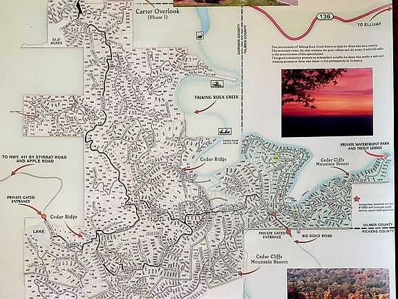 Build your North Georgia cabin escape and keep the door open for rental income potential in Talking Rock Creek Resort. A gated mountain community in Ranger, GA. This 1.71-acre lot features a natural build pad ideal for a future cabin or A-frame, with the remainder of the property sloping into a wooded hillside that adds privacy, elevation, and that true mountain feel. Access is easy with paved and gravel roads throughout the community. Talking Rock Creek Resort offers the lifestyle many buyers want: community pools, tennis courts, a 12 acre lake, and creek access, perfect for weekends in the mountains, a seasonal retreat, or a long-term hold. The HOA allows rentals, creating flexibility for owners who want personal use now and rental use later (buyer to verify any specific rental restrictions, permitting, and county requirements). There are 3 gates for access. This is raw/unimproved land with no soil test currently on file, giving you the freedom to design the septic plan and build layout around your vision. Convenient to Jasper, Ellijay, and Carters Lake. If you've been searching for a property that can be your private cabin getaway while still offering investment upside, this property may check the boxes.