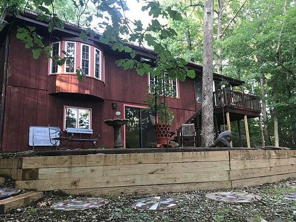 Tranquility & serenity abound in this home at the very end of Contentment Road in Midland Hills Country Club. Updated home is on the lake with a small dock. Open concept living room/kitchen with skylights feature bamboo floors which lead to a spacious screened-in porch overlooking the lake. Lower family room opens to a large patio also overlooking the lake. Come settle in and fish, kayak, golf, hike canoe, watch wildlife or just RELAX! Quartz countertops, kitchen appliances & whole house generator were installed 3 years ago!