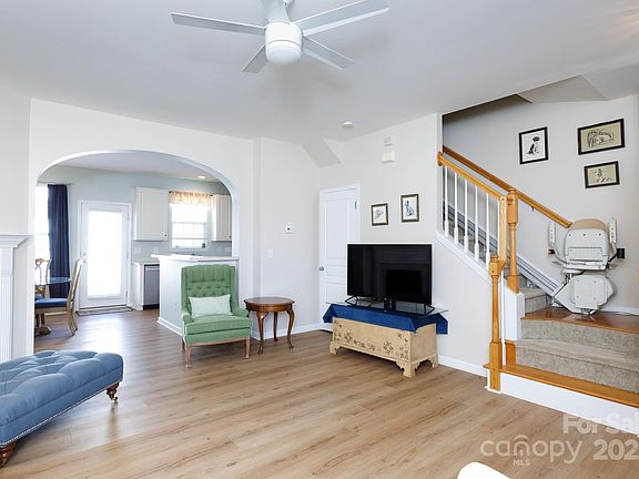 Welcome to effortless living in Ridge Pointe! This charming townhome offers fantastic neighborhood amenities like a community pond, pool, and playground. The heart of the home is the inviting den, complete with a cozy fireplace, seamlessly flowing into a spacious kitchen. Here, you'll find stainless steel appliances, a breakfast bar, a pantry, and a large dining area perfect for gatherings. Retreat to the primary bedroom suite, a private sanctuary featuring a huge walk-in closet and a luxurious, large walk-in shower. Functional details like the tankless water heater and an installed stair-lift add to the home's ease of living. Enjoy your mornings on the lovely front porch or step out to the privacy-fenced back area with a patio and attached exterior storage. Best of all, the location is unbeatable—close to all assigned schools, shopping, and local dining spots.