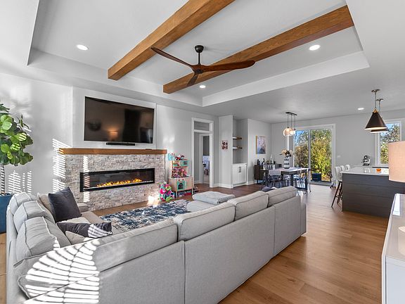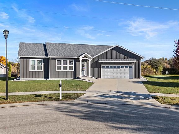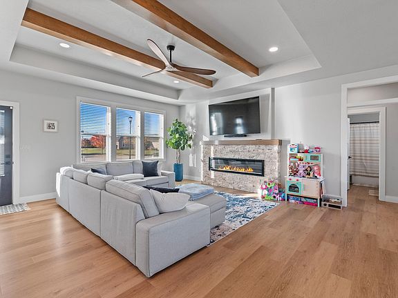 Stunning modern 3BR/2BA ranch reimagines open concept living w/clean architectural lines, natural light, & connection between gathering, dining & relaxing spaces. Expansive great room feels sophisticated & inviting w/wood beam ceilings, sleek fireplace & wide plank LVP. Kitchen combines style & function w/quartz surfaces, pendant lighting, custom cabinetry & a generous island. Large windows throughout let in plenty of light. Split floorplan offers ideal flow w/a gorgeous primary suite w/spa-like bath, dual vanities & walk-in closet. Thoughtfully designed mudroom & laundry zone allow for organization, leading to the spacious lower level ready for your future expansion ideas, stubbed & complete w/egress. Private backyard w/patio and steps from Prairie Trail! 48 hours for binding acceptance.