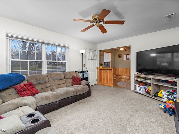 Discover the charm of this delightful ranch-style home, beautifully situated on a prime corner lot! This inviting 3-bedroom, 1-full-bath residence features a stunning custom kitchen from "Virgil's" in Lagrange, OH, complete with natural hickory cabinets, built-in bench seating, pull-out drawers, under-cabinet lighting, and included appliances.
