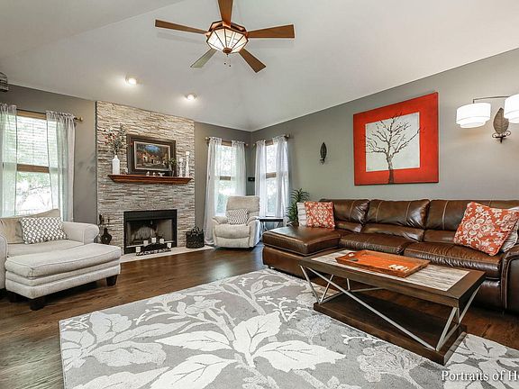 Absolute elegance in this ranch home with 3 car garage! Walk into a welcoming foyer that leads you to a spacious family room w/ stone fireplace. New gorgeous hardwood floors, trim, baseboard & solid oak six panel interior doors. Gourmet kitchen featuring a great amount of cabinets, granite countertops, full Stainless appliances, custom backsplash, center Island/breakfast bar, & large eat in area. Open floor layout (copy of floor plan in photos). Three spacious bedrooms~primary bedroom suite with vaulted ceilings, walk in closet, luxurious bath with dual sinks, separate shower & whirl pool tub. Partial basement with bathroom, tons of storage and potential to make it to your liking. Stunning sun room conveniently located off of the kitchen, great for entertaining! Sun room leads you to brick pavered private patio, large private fully fenced back yard. A/C & furnace w/ecobee thermostat (wi-fi capable), in line humidifier and air UV system 2018, whole house security/cameras 2022, landscape lighting surrounding home w/timer & sensors 2019, water heater 2018! Located near shopping restaurants and more. This home is a must see!