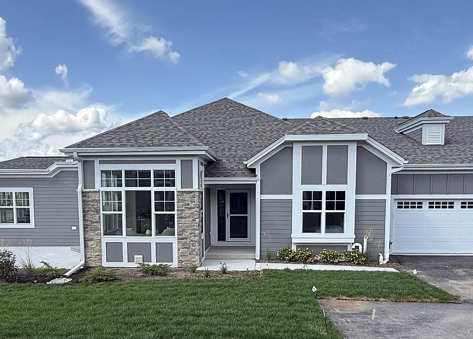 NEW CONSTRUCTION - 2BR/2BA ranch condo with open & airy floor plan offering luxury finishes and large windows throughout. Great room with gas fireplace, Sunroom, & MBR boast 10'ceilings. Kitchen with large center quartz island for entertaining. Sunny den/office for your 'work at home' needs, crafting, or library. Impressive Owner Suite features double vanity quartz countertop with Kohler sinks, linen and WIC, tiled shower. Convenient spacious first floor laundry w/ sink and additional WIC. Lower level with plenty of room to finish, plumbed for full bath. Future Clubhouse, pool, pickle ball and bocce. Move in now!