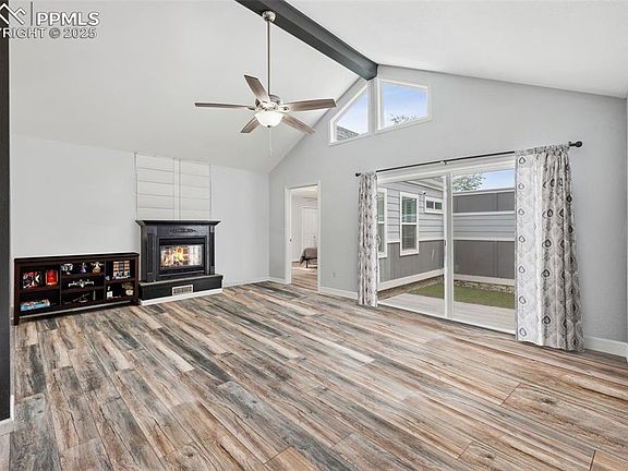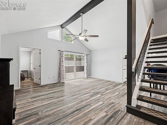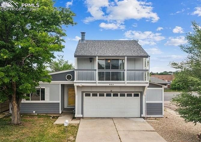 This thoughtfully laid-out 3-bedroom, 2-bath home sits on a sunny corner lot near Quail Lake, Cheyenne Mountain, and Fort Carson. Inside, you’ll find laminate floors, two fireplaces, and a main-level living room that flows into a functional kitchen with all major appliances included. The primary bedroom offers generous closet space, an attached bath, and a skylit dressing area. Upstairs, the loft opens to a private balcony—great for plants, reading, or unwinding. The lower living room leads out to a fenced yard and deck, offering space to relax or entertain. A newer A/C unit, forced air heating, laundry closet with washer and dryer, and attached 2-car garage round out the home’s conveniences. Conveniently located near shopping, dining, parks, and trails, this home offers both comfort and accessibility in one inviting package.