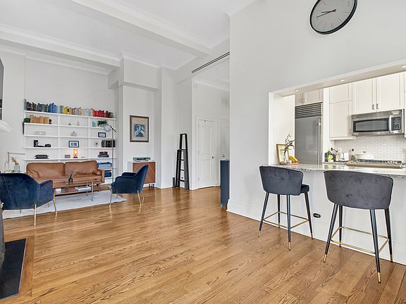 The windowed kitchen features a breakfast bar, stone countertops, Sub-zero refrigerator, dishwasher, and Bosch washer-dryer. The windowed, marble bathroom, features a Robern medicine cabinet and Zuma soaking tub. The bedroom, with western and southern exposures, is sunny and tranquil. There is central A/C, windows in every room, and hardwood floors throughout.