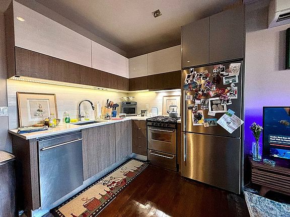 Modern bathroomQueen-sized bedroomsStainless steel kitchenHardwood floors
