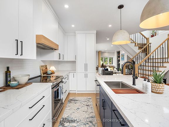 Big, Bright & Beautiful! This fully detached gem in Upper Bloor West Village, newly renovated in 2023 with custom, top-quality finishes, checks every box: large lot w/ a private driveway, spacious open concept interiors, large chef's kitchen, huge windows & doors offering tons of natural light, custom millwork throughout, plus quality finishes that feel warm & welcoming not overdone. Inside, the open-concept main floor delivers on both function & flow. The elegant living room features a modern fireplace framed w/ a custom wood panelled statement wall elevated, elegant & totally cozy. One of many standout features is the clear sightline right through to the backyard, thanks to a full wall of glass sliding doors right off the kitchen and dining area. It creates a feeling of openness that's rare in city homes and brings the outside in all year long. The kitchen? Total showstopper. Custom "slim shaker" style, two-tone cabinetry, Quartz countertops, massive island, dedicated coffee & appliance garage & storage galore. Upstairs, the king-sized primary retreat features a walk-in closet & spa-like ensuite. Two more large bedrooms both w/ lg closets & large windows, plus a oversized, beautifully finished family bath make daily life easy & elevated. The finished basement offers high ceilings, plus multiple large above-grade windows, rec room, guest bed/office, laundry, and second mudroom offers a flexible space that grows with you. Out front the curb appeal is dialled in, think manicured landscaping, wide interlocked walkway, and the unicorn of the west end: a private driveway on a wide lot. Out back: a private, east-facing yard with room to play, relax, and host. Located on a quiet, tree-lined street close to top schools, shops, transit, 15-min walk to BWV & The Junction shopping strip.