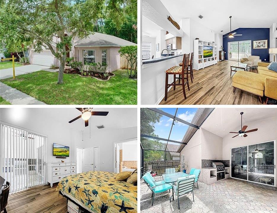 LOCATION! LOCATION! LOCATION! Nestled between Westchase and Town & Country yet super affordable!!! Discover this charming 4-bedroom, 3-bathroom, 2-car garage home in the sought-after Charleston Corners/ Meadow Brook community. This natural gas community offers a low HOA fee and a variety of amenities, including a clubhouse, community pool, tennis courts, and playground, making it an ideal place to call home. The home features a versatile three-way split floor plan. The fourth bedroom is situated at the front of the property, includes an off suite full bath, making it ideal for a guests. Toward the back, two secondary bedrooms share a Jack and Jill bathroom on one side, while the master suite occupies the opposite side. The master bedroom boasts conservation views, spacious walk-in closet, room for large furniture, and a beautifully remodeled master bath with a garden tub, separate shower, and dual sinks along with a sliding glass door for extra natural light and patio access. The kitchen, equipped with stainless steel appliances and ample cabinetry, serves as a perfect gathering spot, featuring space for a large table for casual family dining. For more formal occasions, a separate dining room with built in closet that could easily become a 5th bedroom, or a great work at home/ home school space . This house is carpet-free with all NEW wood-looking tile. Off the great room, a private screened porch with a built-in grill overlooks a conservation area. Additional features include a Home Generator, newer leased solar system that the buyer has the option to take over (not obligated) fully fenced yard, a water softener, and a newer roof installed 2017. This home is a perfect choice and won't last long. Schedule your appointment today!