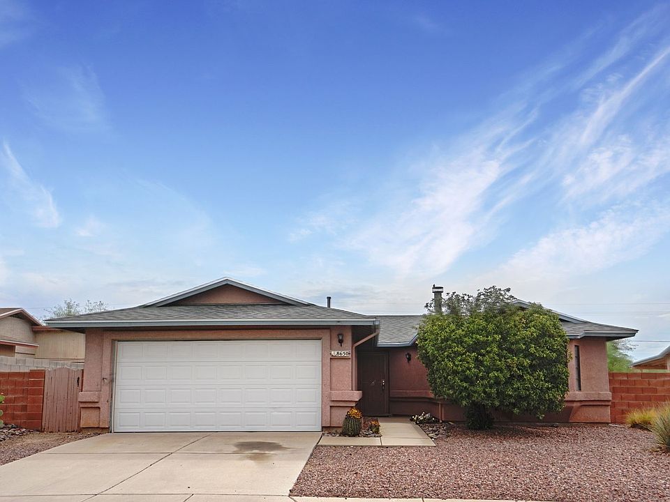 Discover comfort and elegance in this light-filled 3 bed, 2 bath Tucson home nestled in the peaceful Sunset Point II community. With 1,244 sq ft of open, airy living space, this home offers stylish hardwood and tile flooring, a cozy and efficient kitchen, and large windows that fill every room with natural light. The private, fenced backyard features a beautifully landscaped desert setting and a covered patioideal for morning coffee or sunset dinners. A 2-car garage and kitchen appliance suite (refrigerator, oven, microwave, dishwasher) provide modern convenience, while the pet-friendly policy ensures everyone in the family feels welcome. Located near Crooked Tree Golf Course, with easy access to city amenities.