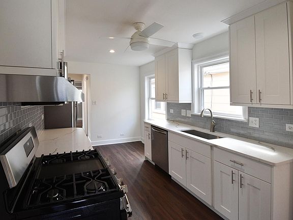 Welcome to your new home! WOW! 5 bedrooms home !It is absolutely stunning, meticulously remodeled with great attention to details. Literally all NEW in this all brick ranch featuring new plumbing, electric, drywall, extra insulation, floors, all windows, doors, patio door, trims, crown molding, tall baseboards, lots of recessed lighting in every room. Gorgeous kitchen featuring 42" white shakers cabinets with under cabinets lighting, quartz counter tops, slick subway tiles backsplash, large one bowl stainless steel sink, fancy faucet, vented hood, all stainless steel appliances. 2 new baths-one with bath tub another one with shower-both featuring stainless steel polished towel drying rack, motion activated lights, heated tile floors, timer controlled ventilation fans, tray ceiling lighting, stainless steel fixtures, beautiful tiles. There is ample closet space with organizers t-out the home with additional enclosed storage space under the stairs. Full very large professionally finished basement with 2 extra bedrooms or offices, large laundry room with washer/dryer and sink. Utility room with hi-efficiency furnace (2018) and hot water heater (2015) , new electric box (2020) , home is computer network and TV signal wired, ready to accommodate cable or DSL/fiber connection. Roof - 2013. Detached oversized 2 car garage with newer doors and openers. There were no expenses spared on remodeling of this home. Total of 5 bedrooms-3 on main level and 2 in the basement. Freshly painted in contemporary colors - 2020. Extra insulated walls, new windows and doors and high efficiency furnace make the house energy efficient. New electric service thoroughly updated to meet local building code. All water supply lines replaced with copper piping, drain lines replaced with PVC pipes. Interconnected CO/smoke detectors t-out entire house. All remodeling with village permits and inspection. Close to Triton College, Amazon warehouse, with walking distance to Rhodes school, recreation park, and Metra. Great Indeed!