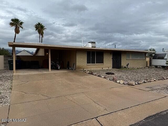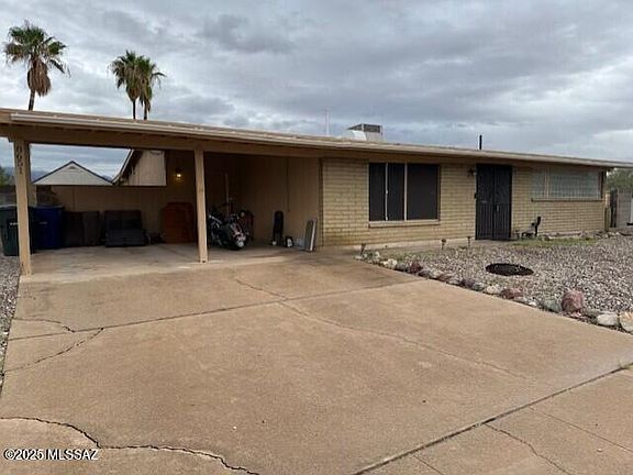 Discover this 3-bedroom, 2-bathroom home nestled on a large lot in the sought-after Hidden Hills neighborhood of Tucson with no HOA. Enjoy beautiful mountain views from your backyard featuring a pool, screened-in patio, and built-in bar -- perfect for relaxing or entertaining. The primary suite offers a jetted tub for unwinding after a long day. With ample storage sheds and plenty of outdoor space, this property has room for all your needs. Home does need some TLC, giving you the opportunity to add your own personal touch and create the home of your dreams. Pool will need to be replastered.