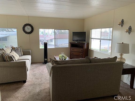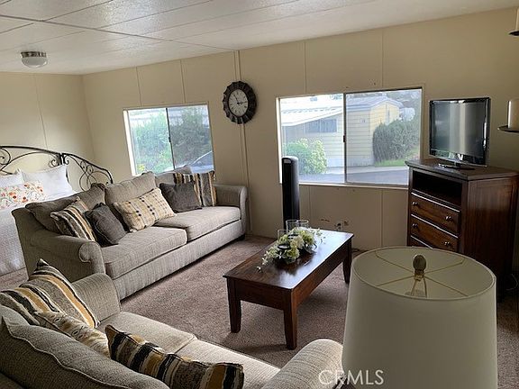 Spacious 2 Bedroom, 1 3/4 bath located in Casa Volante a 55+ Community, in the city of Rancho Cucamonga. This mobile home features a spacious living room, formal dining area, kitchen with gas stove and refrigerator included in the sale, inside laundry with washer and dryer included in the sale. Carport with storage shed at the end, low maintenance landscape. Newer roof. Located near the Clubhouse / Pool and guest parking spaces. In move-in condition, hurry won't last!