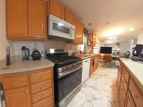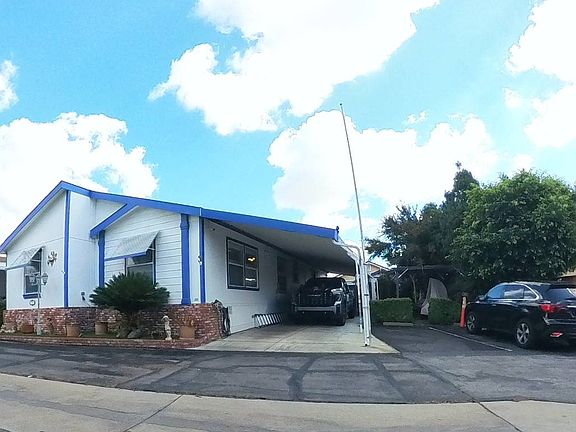 * 2 bedrooms plus Office room. Easy conversion to a 3rd bedroom. * Tape and Textured Walls and Vaulted Ceilings. * Recessed lighting. * Raised panel cabinets and solid surface Corian countertops. * All kitchen appliances included. * Solar tube skylights. * Spacious living room and separate family room. * Tile and laminate flooring. * Washer and dryer included. * Master bath has dual sinks and custom solid surface Corian stall shower. * Walk in closet. * Beautiful patio area with artificial grass, gazebo, water fountain. * 5 Fruit citrus tree. * Spacious carport with extension posts. * Additional 2 car parking spaces included in this lot. * Large work shed and separate mini shed. * Handicap lift included. * Brick front skirting and planter. * This manufactured home is on residential Solar energy. * Emporium Power monitoring system. * EV charging station. * Ring Alarm system. * Central heat and air. TOO MANY FEATURES TO LIST. CALL FOR MORE INFORMATION OR TO SCHEDULE A VIEWING