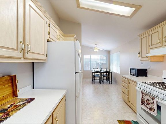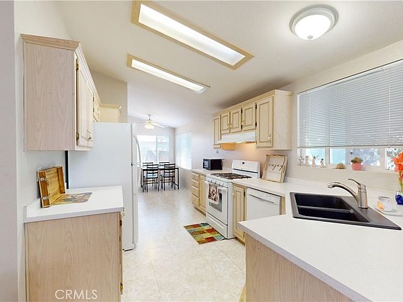 Located in the desirable Casa Volante 55+ community. A pristine mobile home featuring three bedrooms, two baths, and a beautiful open-floor plan. The living room has bay windows, high ceilings and an adjacent dining area with French doors. The open kitchen offers a walk-in pantry, bright breakfast area, all appliances and lots of cabinets. The primary bedroom is secluded from the others, has an ensuite with 2 separate vanity areas, a standing shower, and a lovely soaking tub. There is one storage shed, and a Private Covered Patio area. only a short distance to the Clubhouse, pool and spa. This is a 5 star park and is located minutes from San Antonio Hospital and all resident doctors. Enjoy daily strolls on the Pacific Electric Trail.