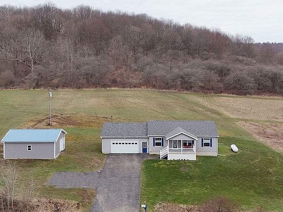 Enjoy the country in this ranch home with 4+ acres and stunning views! Just 20 minutes from Ellicottville and 10 minutes from Lime Lake make this perfect for seasonal visits or year-round living. This home is move-ready with appliances, flooring, and carpeting that are less than 6 months old. Features a built-in beverage counter, all LED lighting with integrated ceiling fans in bedrooms, and an insulated, heated garage ideal for a workshop or recreational area with an outlet ready to plug in your generator to provide the whole house with power! A full basement with 9' ceilings makes a great space for plans you may have. Includes a spacious 28'x24' outbuilding for additional storage.