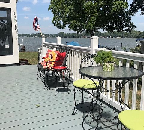 This charming, FULL VIEW-LAKE FRONT, cozy cottage-like home has every update you can imagine. Updates have been made in 2017-2019. They include laminate wood flooring and carpet, kitchen stone countertops and back splash, kitchen appliances, exterior vinyl siding and metal roof, new screens and composite exterior on the large three season room, new railing on deck and two new exterior vinyl screen doors. And if that's not enough to peak your interest, this home sale offers immediate occupancy, comes fully furnished, and has an automatic boat lift at the dock! It's a must see to fully appreciate! The lot is not part of sale. Property lot rent is currently $650.00