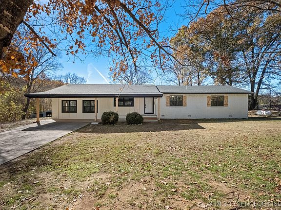 Absolutely stunning country home with modern flair! This home has been completely renovated and boasts 1.97 acres m/l with coveted Hwy 100 frontage! Tucked back off the road and surrounded by beautiful mature trees, this property feels like a private oasis. An incredible location for those commuting to Stilwell or Tahlequah and is only a 10 minute drive to the lake!