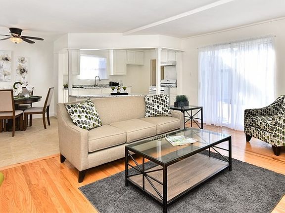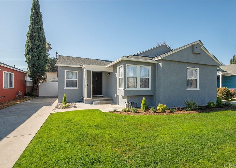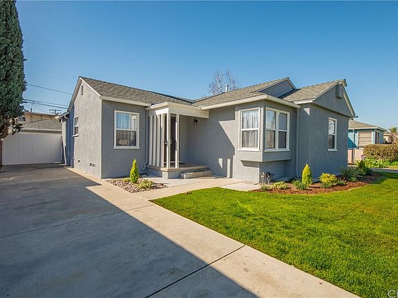 This Mid Century Home with an open floor plan with lots of light. Featuring a Cozy living room with back yard access. Open kitchen & Island with new counter tops, sink & faucet, New stove & dishwasher. Nice size bedrooms & closets. Full bath with a pedestal sink, new flooring & shower over tub. Fresh interior & exterior paint. Refinished Oak Hardwood Floors thru-out. Double pane windows. New composition roof. Restuccoed. Large private back yard with new gates & privacy fence. Patio slab. Long driveway leading to a 2 car detached garage plus attached work or storage room. Front sprinklers with timer. Located close to schools, shopping & freeways.