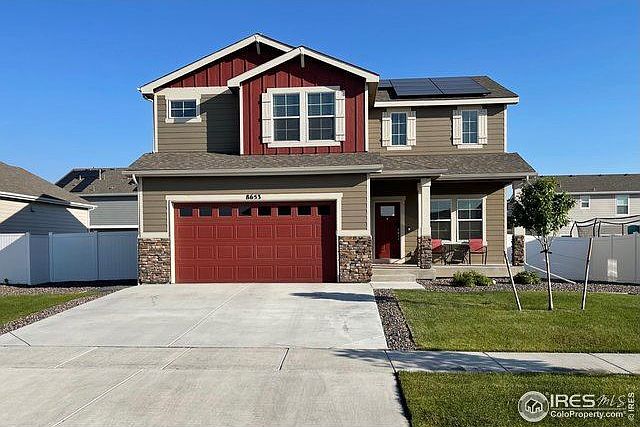 Enjoy the beautiful 2 story in Trails at Sheep Draw subdivision. With an open floor plan on main level it's good for large family gatherings. Nine foot ceilings on main floor. On upper floor with master bedroom and 3 other bedrooms. Large bedroom in basement. Upper floor also has a 15 X 13 loft. Master and 2 upper bedrooms have walk in closets. To make laundry easy it is located on upper level.Basement has a wet bar in large rec room with a small bar fridge.Yard is completely landscaped with sprinkler system with an over sized patio. Six foot privacy vinyl fence encloses backyard. Also enjoy low utility bills with efficient solar panels. Down the block is a community park and bike trails.Great family neighborhood!!!!!