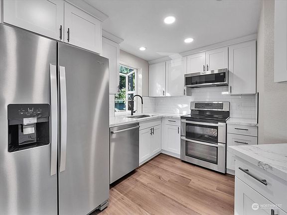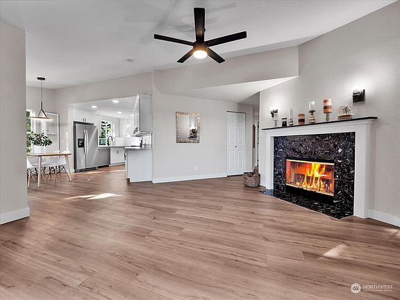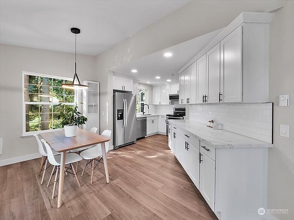 Rare opportunity for a condo featuring 3 beds, 2 baths, a garage, and 1 uncovered parking space. This elegant top-floor end unit is filled with natural light, boasts vaulted ceilings, and offers mountain views. Renovated with permits less than 2 years ago, it features wide plank flooring and an open kitchen with a new refrigerator, dishwasher, and double ovens. The kitchen includes quartz countertops and white cabinetry. New windows were installed 2 years ago, and a new roof was installed 5 years ago (50-years warranty). The attic is fully insulated- R49 insulation. NO Rental Cap! The HOA covers water, sewer, gas, and insurance. Located in the esteemed Lake Washington School District, it’s 5 minutes from downtown Redmond and Microsoft.