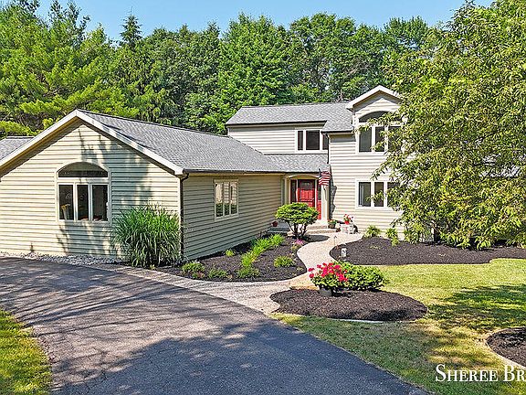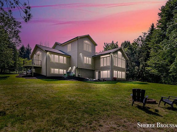 Heated attached three car garage with extension. Other amenities include: central vac, in-ground sprinkling system. Theater room furnishings are included. Conservation & Honey Creek offer miles of accessible pathways . 20 min from downtown Grand Rapids.