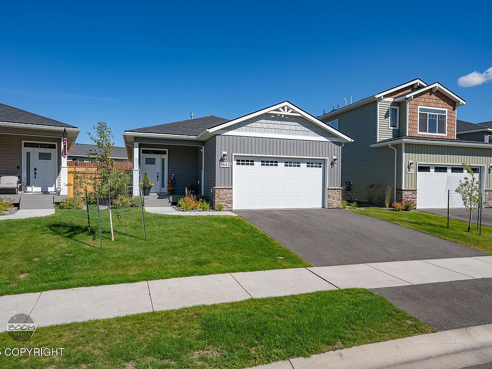 Welcome to Sonoma Glen -- ideally situated in West Anchorage with quick access to shopping, dining, and entertainment, and just minutes from Ted Stevens International Airport.This better-than-new ranch home blends refined design with purposeful living, finished with top-tier upgrades throughout. Highlights include:Luxury plank flooring in the main living areas,Eat-in kitchen with oversizedQuartz dining bar, Upgraded gas range with hood, full tile backsplash, under-cabinet lighting, and expansive corner pantry and Custom full-extension, soft-close cabinetry throughout. The vaulted great room is bathed in natural light and anchored by a stone-surround corner gas fireplace. Nine-foot ceilings extend through the rest of the home, enhancing the open feel. The master suite offers coffered ceilings, room-darkening blinds, a walk-in closet, dual quartz vanities, a tiled shower, and a private water closet. Two additional bedrooms share an upgraded hall bath. A dedicated laundry room and drop zone off the garage add convenience to style. Experience sophistication, comfort, and quality all in one beautiful home.