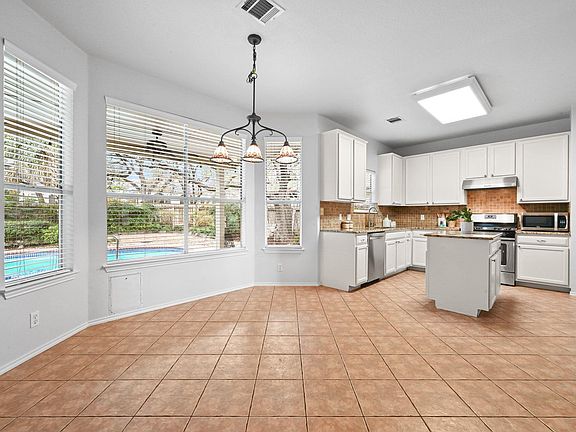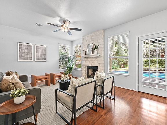Under the trees and filled with light, this home is built for living well. The open kitchen connects to the heart of the home, while a flexible front room adapts as a home office, playroom, or extra gathering space. Step outside to your own retreat with an in-ground pool, spa, and covered patio made for unwinding and entertaining. The spacious primary suite feels tucked into the treetops and includes a custom closet system. Generous secondary bedrooms and energy-saving solar panels round out the everyday comfort. Walk to Great Oaks Elementary, Cedar Valley Middle School, and explore the Brushy Creek Hike & Bike Trail just minutes away. Quick routes to 620 and SH-45 keep everything within easy reach.