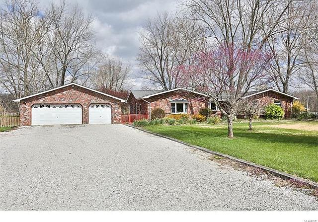 Impeccably kept brick ranch on 10 tranquill acres just mintues from freeway and bike trails. This home has it all including 4 bedrooms, 3 full baths, living room, formal dining room, family room, a large open kitchen with LOTS of cabinet and counter space as well as a full second kitchen! The split floor plan would be a great area for guests, in-laws, live in nanny; complete with full kitchen, full bathroom, living room and good sized bedroom! Features of the scenic 10 acres include a large 3-car garage with PLENTY of storage space, multiple fenced pastures, woods and an AWSOME outbuilding (36 x 48) that has an office and concrete floors. PERFECT for animals, storage for your coamper or trailer, work shop for your toys or a HUGE "recreation cave!" Some, but not all, of the many updates include a newer roof, septic system, a back-up generator that runs the house as well as the outbuilding, HVAC system and so much more!!